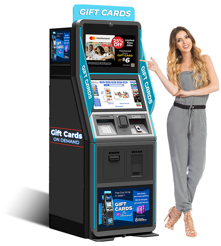 - Digital gift cards in store for the first time (even for the cash customer) using extended payment options, including eWallet (for storage/payment at no additional cost), at the kiosk
